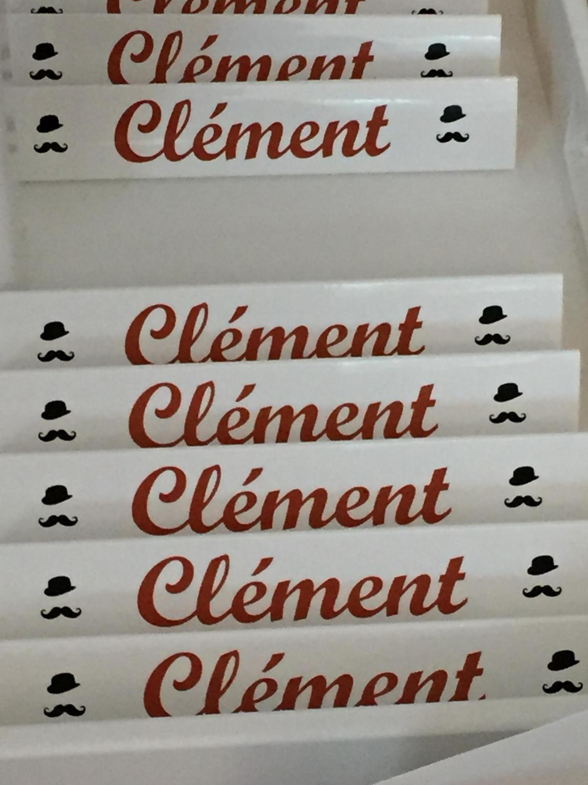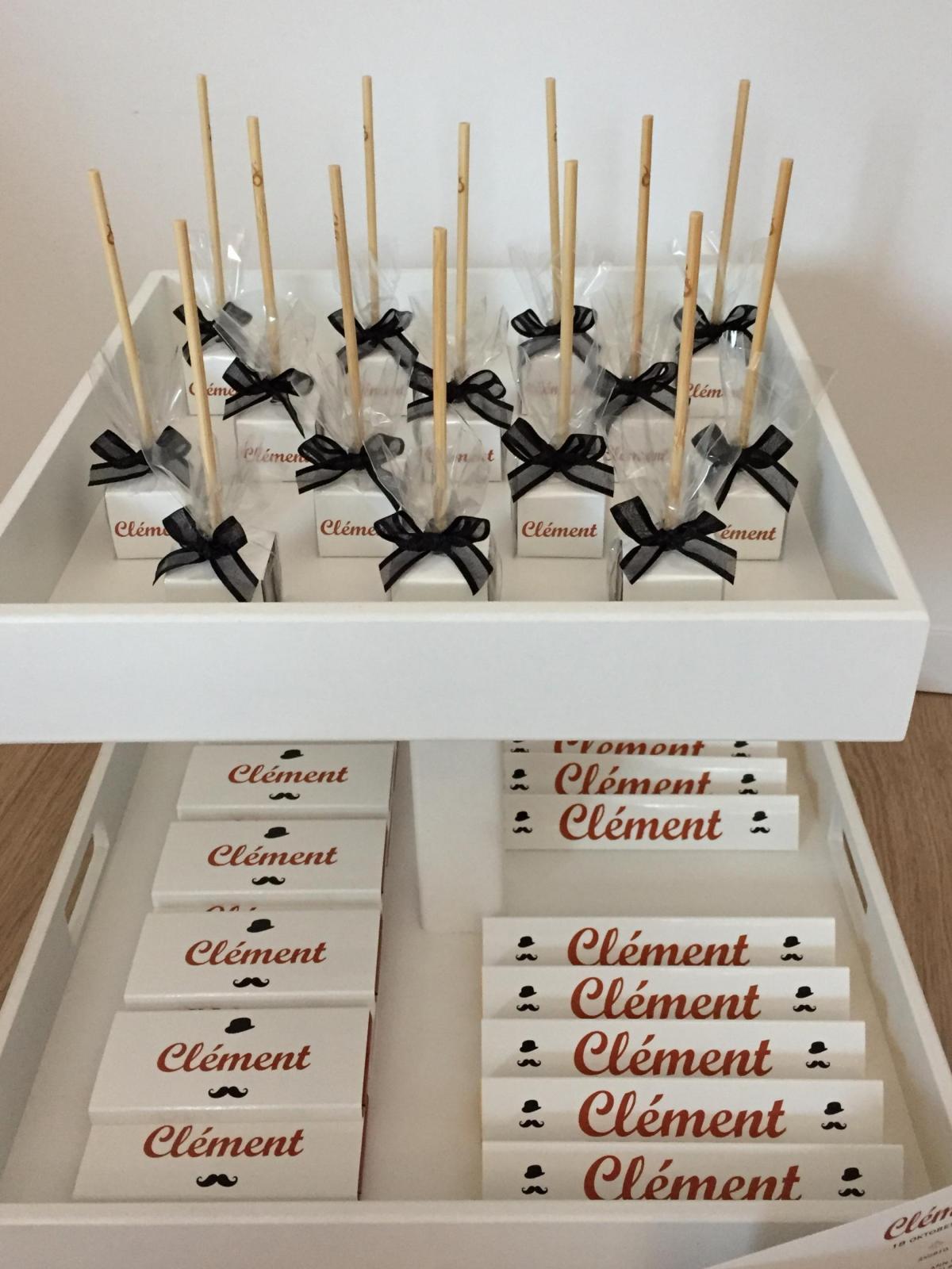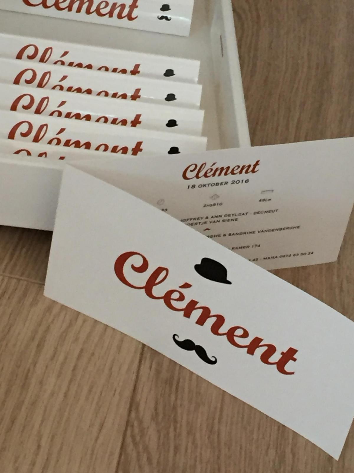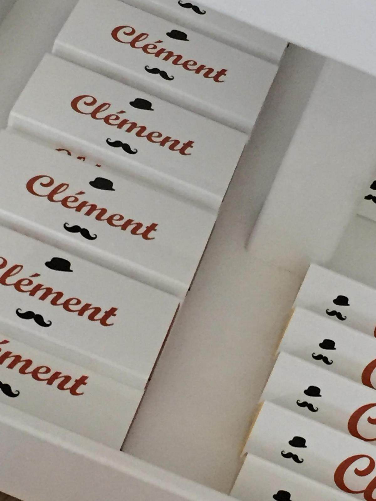 Kleine broer Clément kreeg een glanzend kaartje met de naam in koperkleur met een zwarte bolhoed en snor. Lekker stoer ... De chocoladeliefhebbers konden kiezen een een platte reep chocolade, een toblerone of een chocostick voor warme chocolademelk.